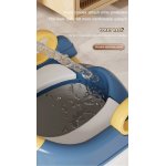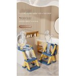 Reductor toaleta pentru copii Little Mom Teddy grey, cu doua trepte, colac moale din pvc detasabil, pliabil, design anti-stropire, baza antiderapanta, inaltime reglabila, spatar si manere, compatibilitate universala