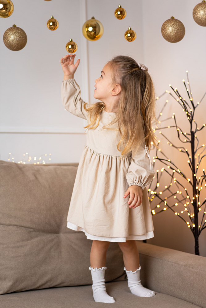 Rochita bej din bumbac Nolis 3-4 ani