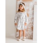 Rochita eleganta cu maneci lungi, realizata din bumbac 100% crem cu motive florale grafit, perfecta pentru diverse ocazii.