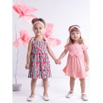 Rochita eleganta cu maneca scurta realizata din bumbac roz, decorata cu o funda mare pe piept.