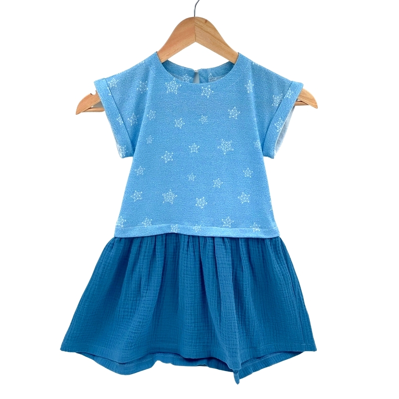 Rochita de vara Too pentru fetite din jersey cu fustita muselina Deep Blue 4-5 ani