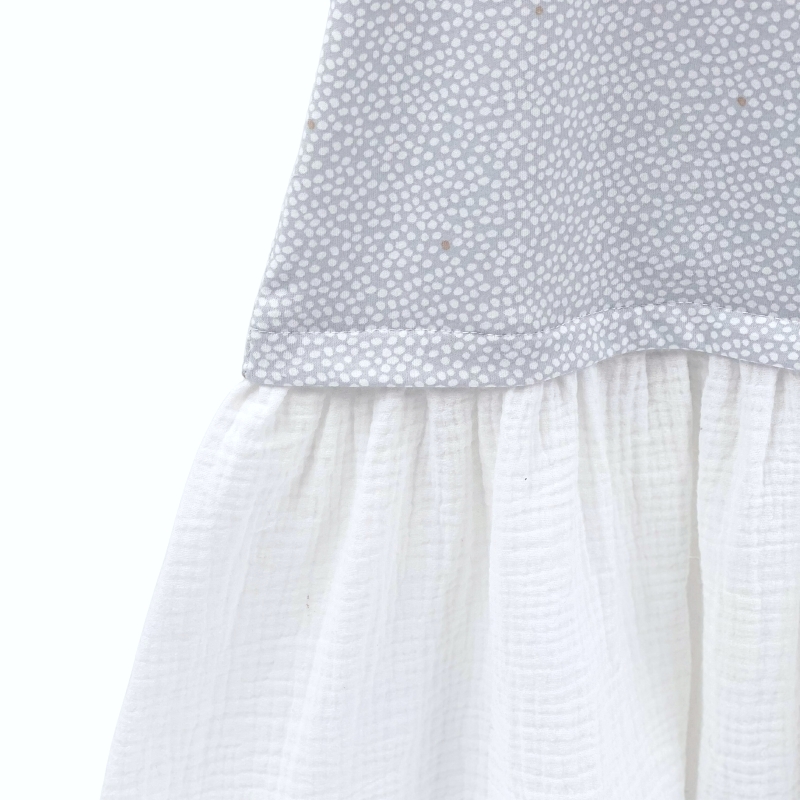 Fusta usoara de muselina, si partea de sus realizata din jerseu o va ajuta sa se simta confortabil toata ziua!
