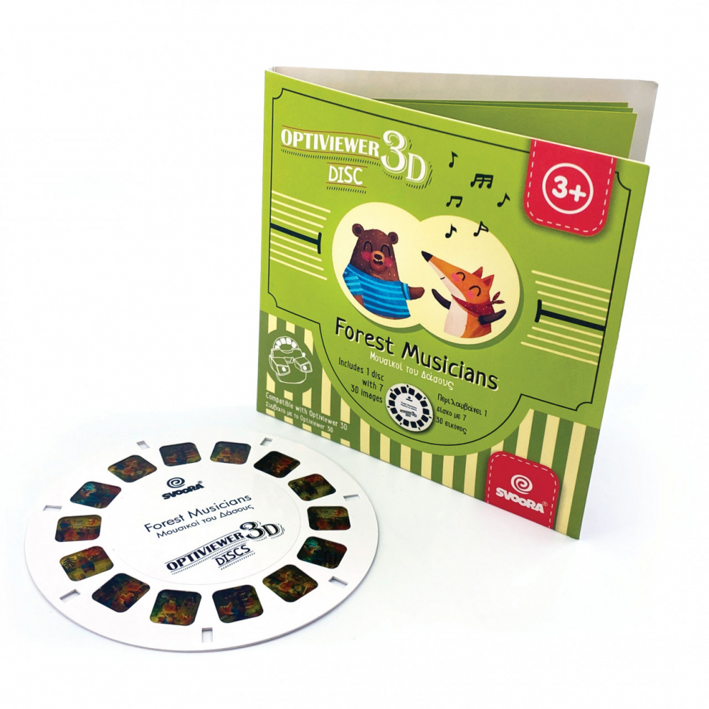 Haideți să explorăm o poveste uimitoare "Muzicieni"! 7 imagini 3D impresionante vin să extindă distracția 3D Optiviewer! Descrierea conținutului imaginilor poate da startul multor povești diferite care sporesc imaginația, dezvoltă observația, lărgesc creativitatea și ajută copilul să rămână concentrat pe un anumit subiect! Fiecare pachet de bobine include o mică broșură cu toate imaginile care pot fi explorate de părinți și copii simultan, sporind legătura dintre ei! Sunt disponibile 3 povești diferite compatibile cu 3D Optiviewer (#03005) și cu proiectoare similare.