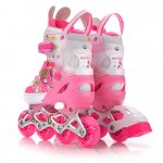 Role pentru copii Meteor Pink Bunny model configurabil 4 in 1, cu lumini, cizma semi-moale cu dimensiune reglabila si sistem de ventilatie, roti din PU, rulmenti din carbon ABEC-7, masura M 34-37