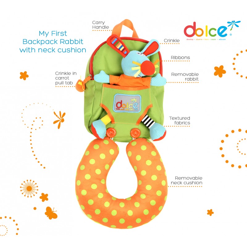Rucsac cu jucarie iepuras si perna de calatorie Dolce