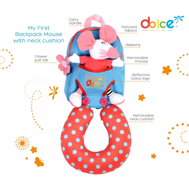 Rucsac cu jucarie soricel si perna de calatorie Dolce