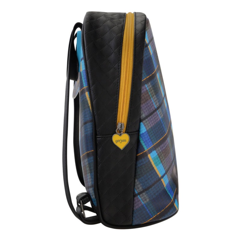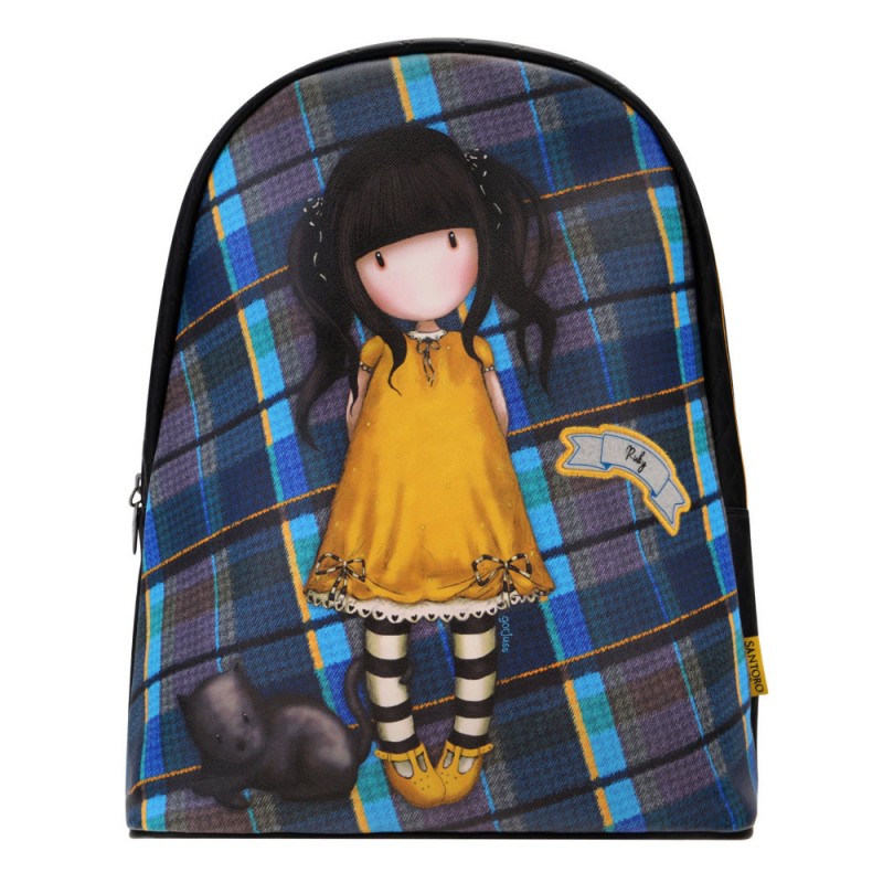 Gorjuss Rucsac fashion Tartan Ruby, alege un rucsac de calitate, util si foarte practic, din colectia Gorjuss. Acest rucsac fashion uimitor are un design special. Partea din fata beneficiaza de un finisaj modern din tartan, o tesatura matasoasa in carouri. Are o coloristica deosebita si un decor minunat cu micuta Ruby Yellow alaturi de o pisicuta neagra. Simpatica fetita Gorjuss va deveni cea mai buna prietena a tuturor domnisoarelor care o vor purta in cele mai frumoase calatorii.
