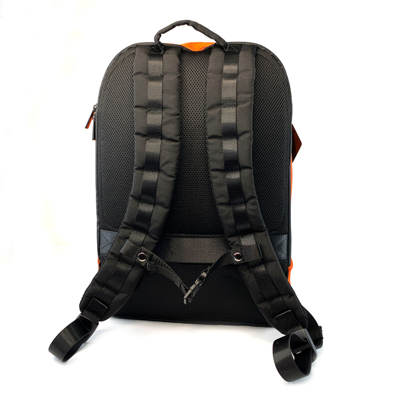 Rucsacul are spatele buretat, bretele captusite si ajustabile, o bareta care permite atasarea lui la orice troler de voiaj si un maner scurt;