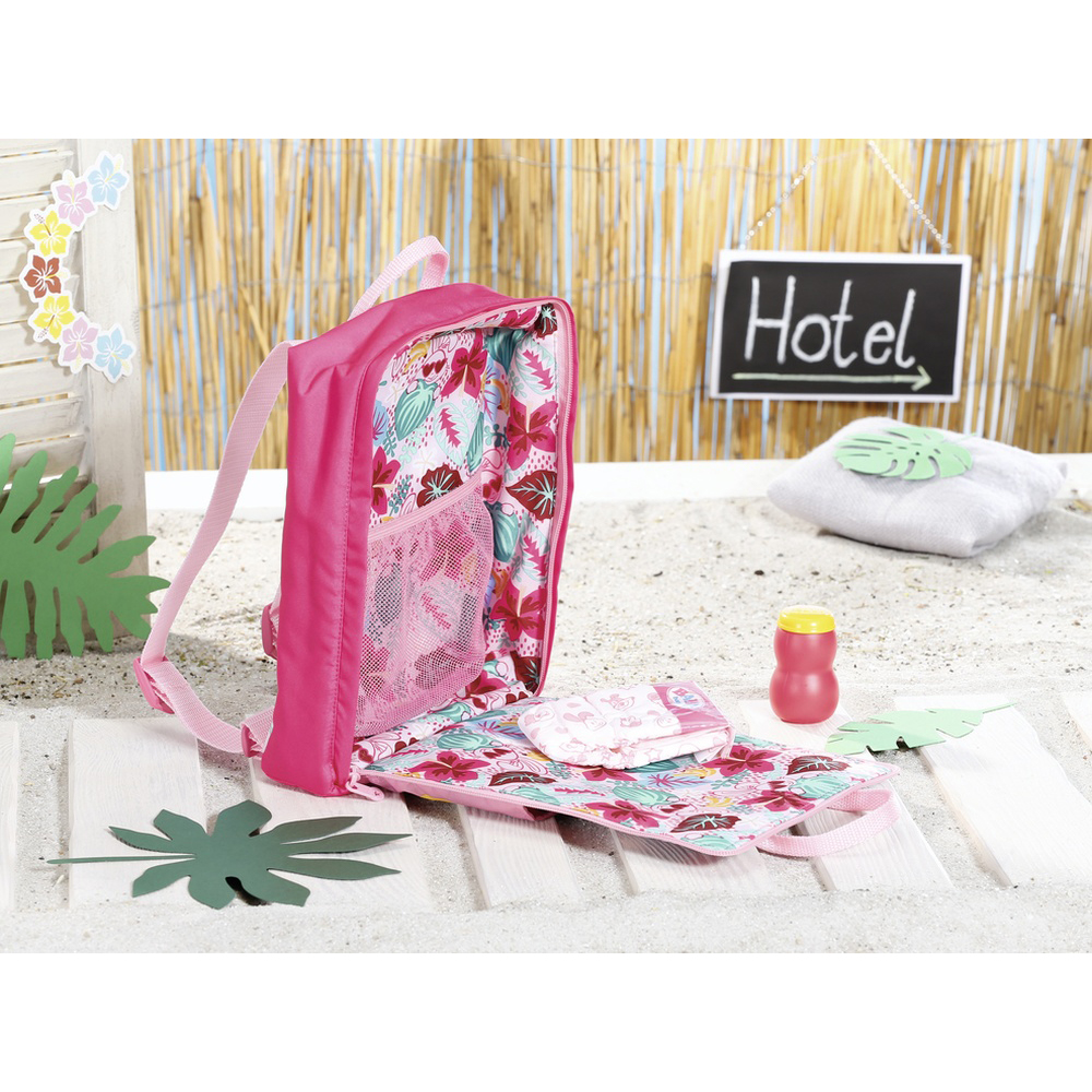 BABY born - Rucsac pentru schimburi de la Zapf Creation in stilul padurii tropicale Amazon are mult spatiu pentru tot ce aveti nevoie pentru calatorie.