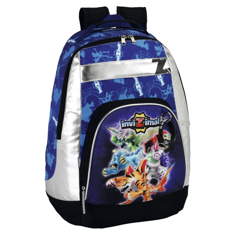 Rucsacul pentru scoala colectia Invizimals are un compartiment si un buzunar exterior, ambele inchise cu fermoar, bretele dublate si ajustabile, bareta de mana.