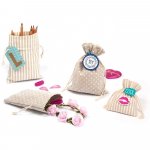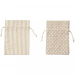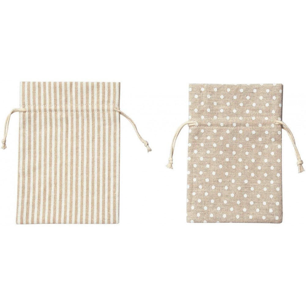 Sac din bumbac/poliester cu imprimeuri, set 6 bucati, 3 dimensiuni: 10 x 8 cm, 13 x10 cm si 18 x 13 cm, are o gama larga de utilizari cum ar fi depozitarea obiectelor mici sau pentru ambalarea cadourilor.