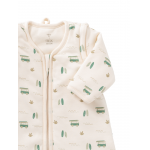 Sacul de dormit gros, cu maneci detasabile, model Surfboy, il ajuta pe cel mic sa aiba parte de un somn linistitor si confortabil, datorita celor doua straturi de bumbac organic si captuseala fina din poliester.
