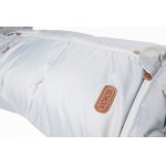 - Umplutură de lână ce reglează temperatura în partea de jos, umplutură ușoară și confortabilă de puf și pene în partea de sus