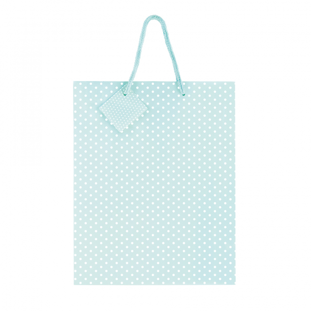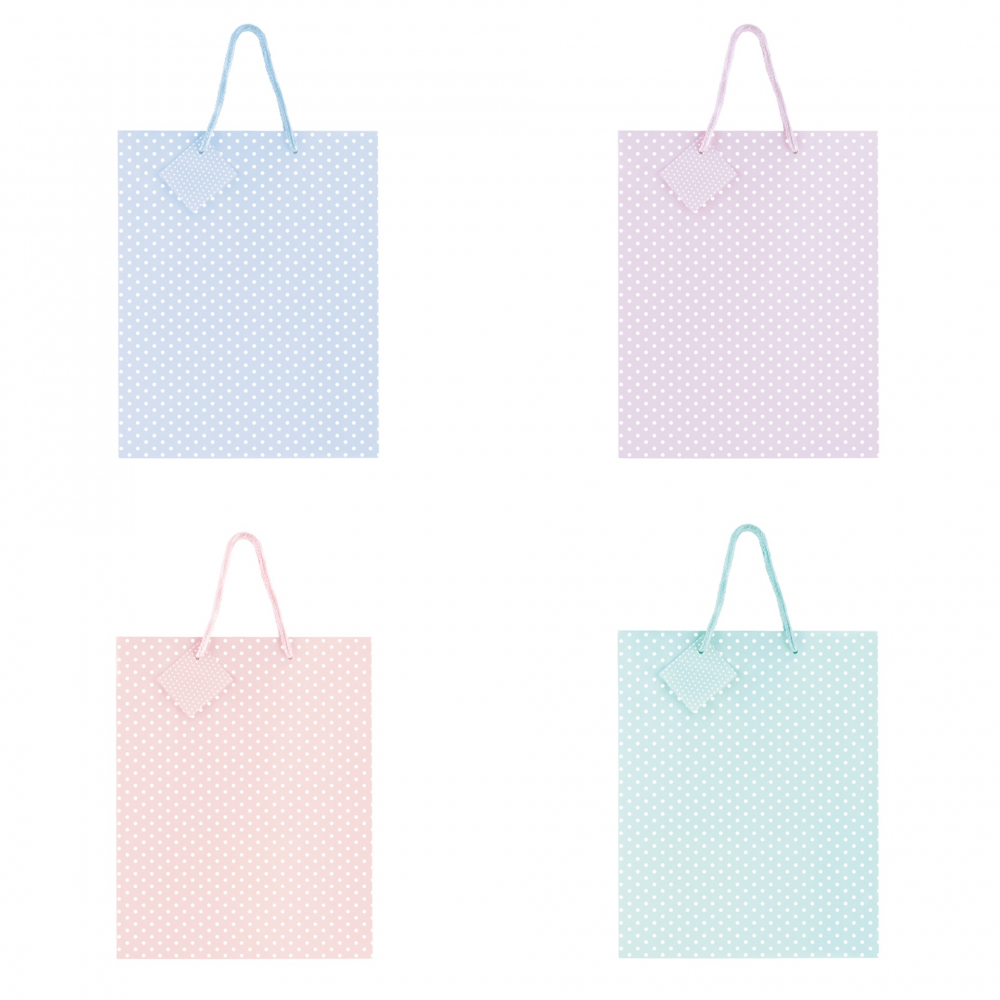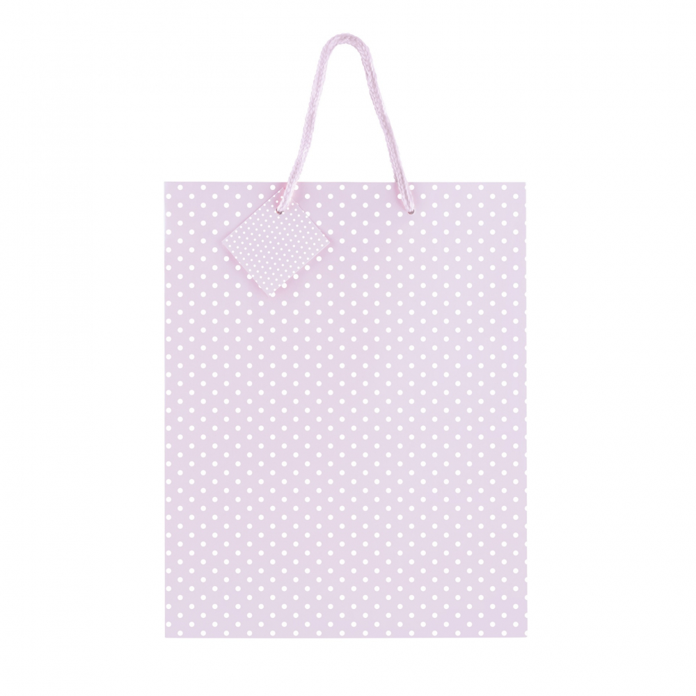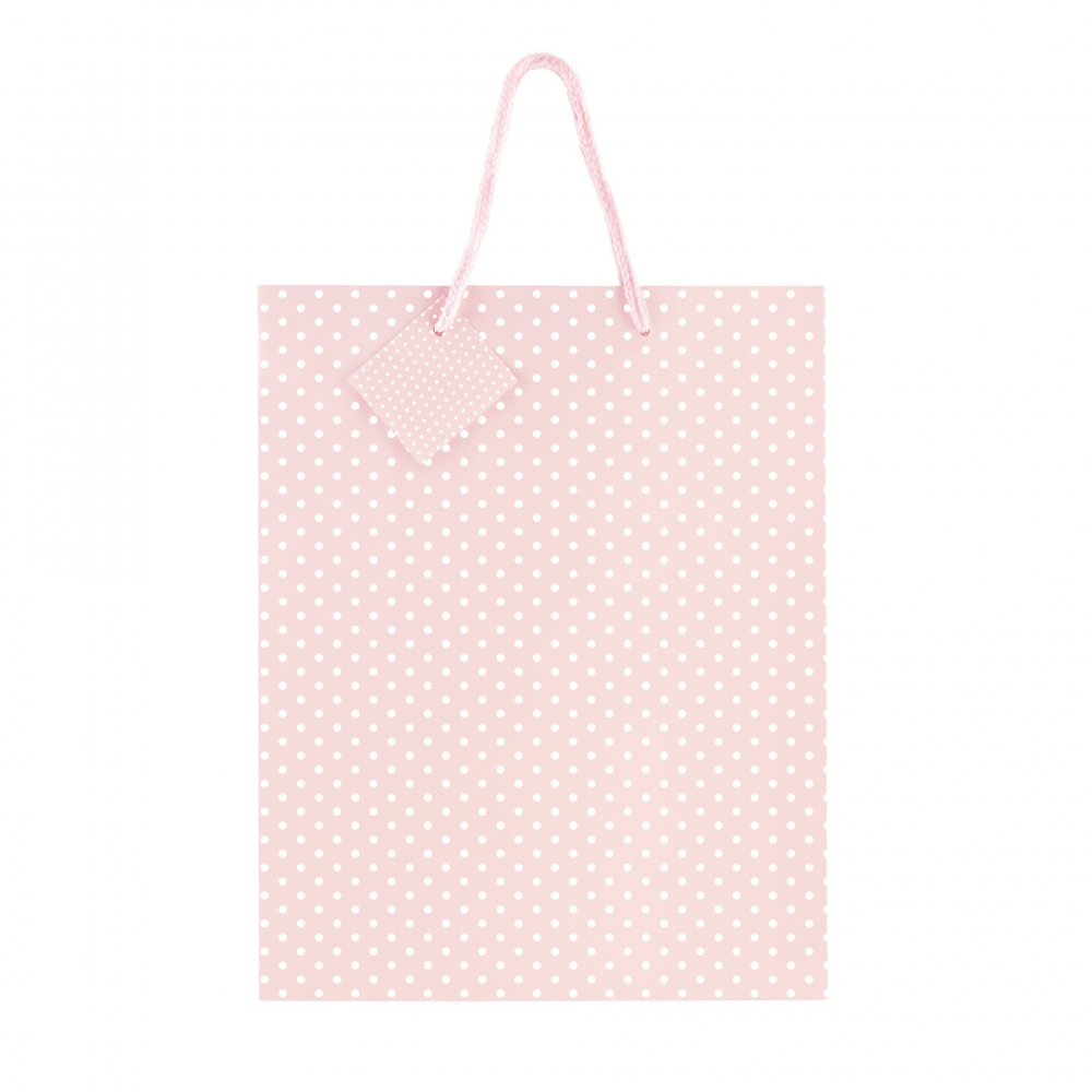Sacosa Pastel cu buline din hartie cu maner din snur 17.8x23x9.8 cm