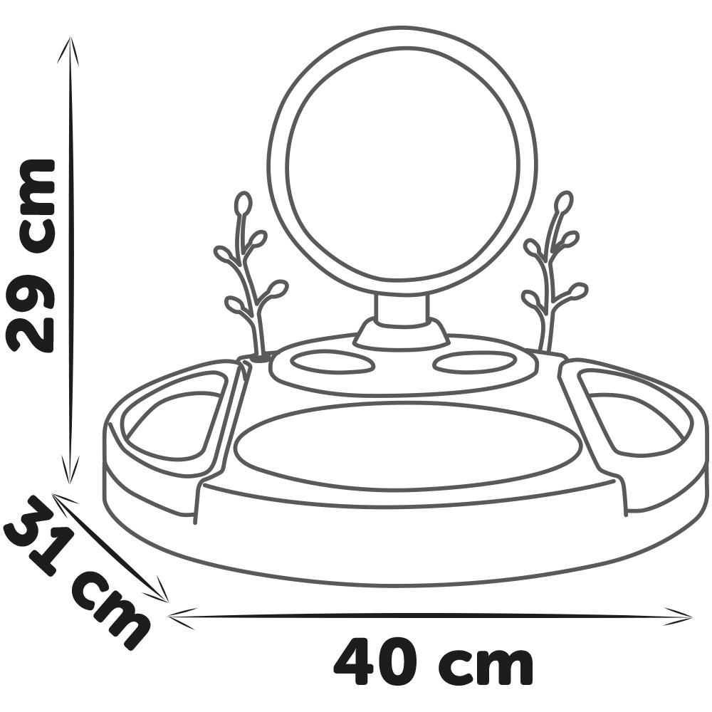 - Rafturile rotative ofera spatiu suplimentar de depozitare, doi copaci pentru bijuterii iti permit sa agati bratari, inele, coliere si multe altele