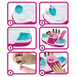 Consola portabila ofera un spatiu de joaca atractiv, unde cei mici isi pot usca unghiile cu ajutorul mini-lampii incluse, apoi pot aplica modele folosind glitter, pensule sau sabloane autoadezive.