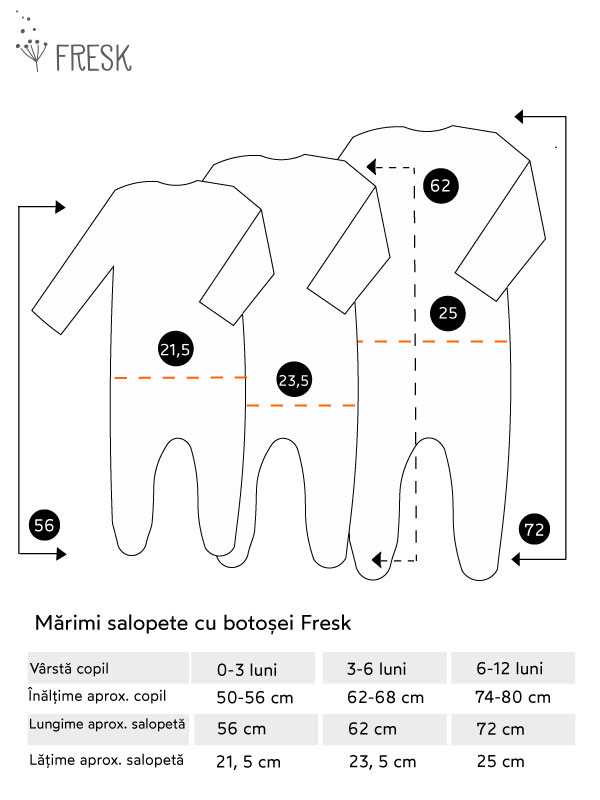 Salopetele-pijama sunt disponibile pentru bebeluși cuprinși între: