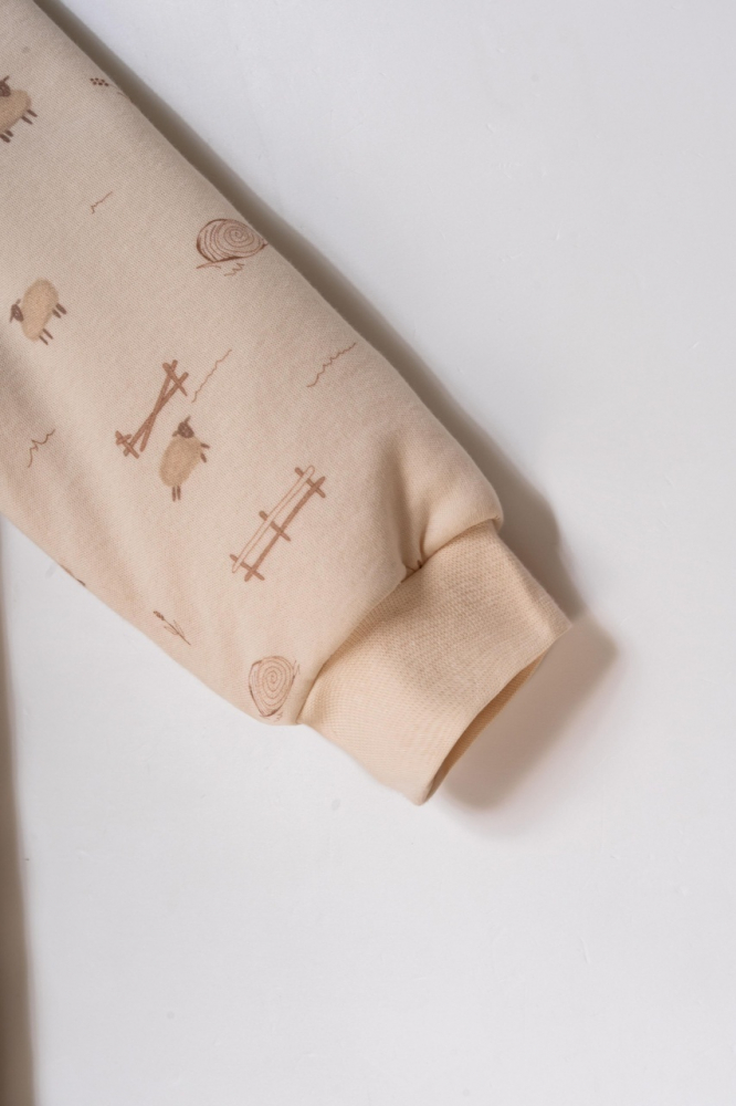 Imprimeurile delicate cu oițe și tonurile neutre adaugă un aer cald și natural, potrivit atât pentru fetițe, cât și pentru băieței.