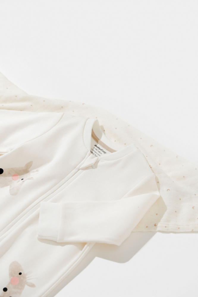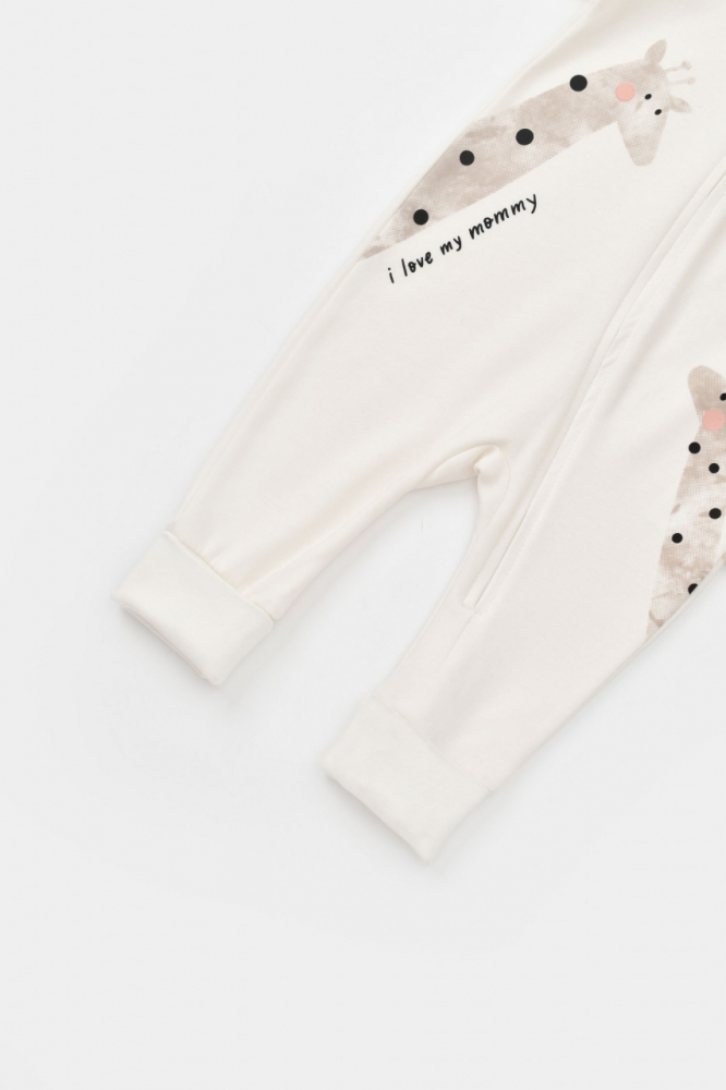 Salopeta cu fermoar din bumbac organic Girafe Ecru 6-9 luni