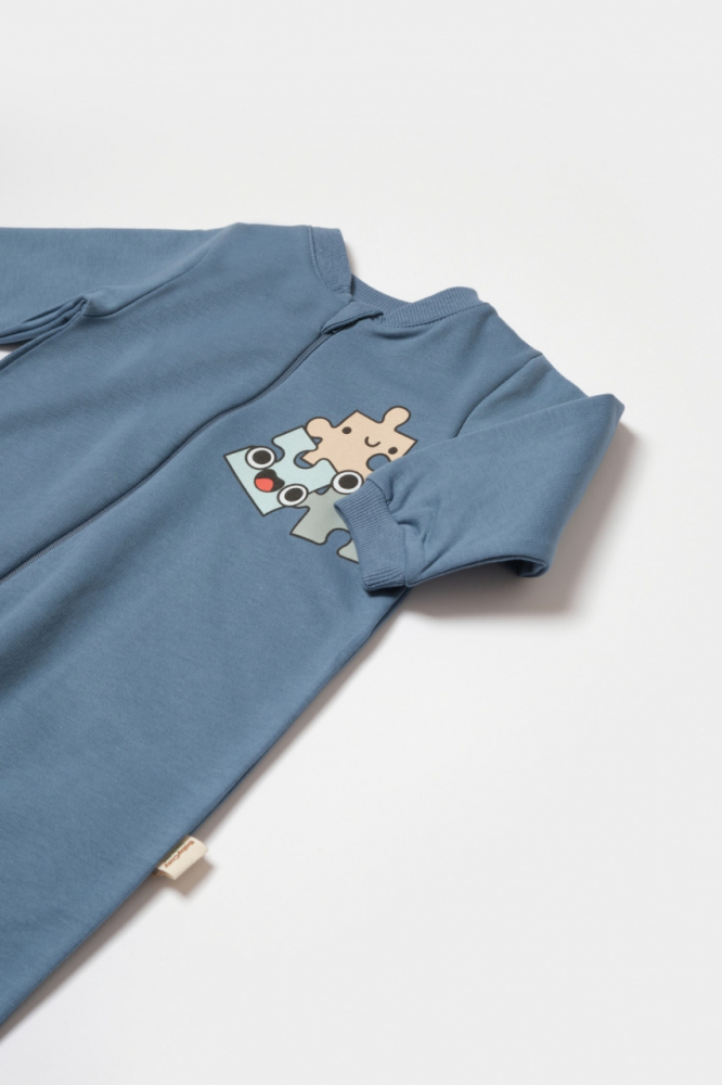 Salopeta cu fermoar Two thread BabyCosy 100% bumbac organic Indigo 6-9 luni