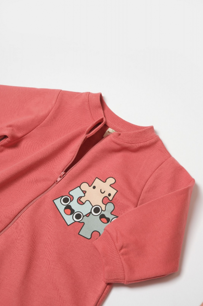 Salopeta cu fermoar Two thread BabyCosy 100% bumbac organic Rose 18-24 Luni