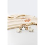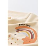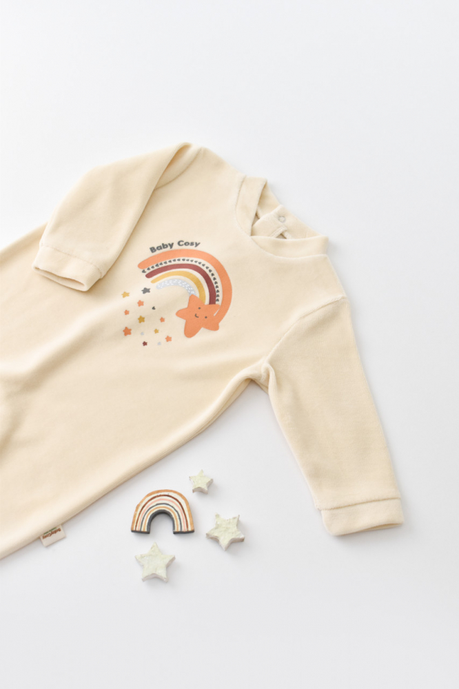 Salopeta cu maneca lunga si botosei Curcubeu Baby Cosy Crem marime 0-3 luni