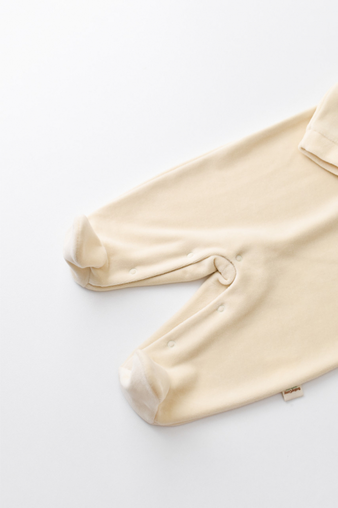 Acestea sunt hainute din 100% bumbac organic- material certificat GOTS fiind un material respirabil si sanatos pentru pielea bebelusului.