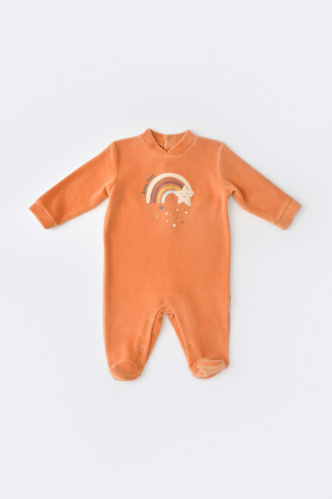 Salopeta cu maneca lunga si botosei Curcubeu Baby Cosy Portocaliu marime 3-6 luni