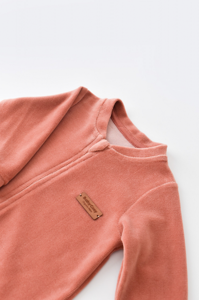 Salopeta cu maneca lunga si fermoar Baby Cosy Caramiziu marime 12-18 luni