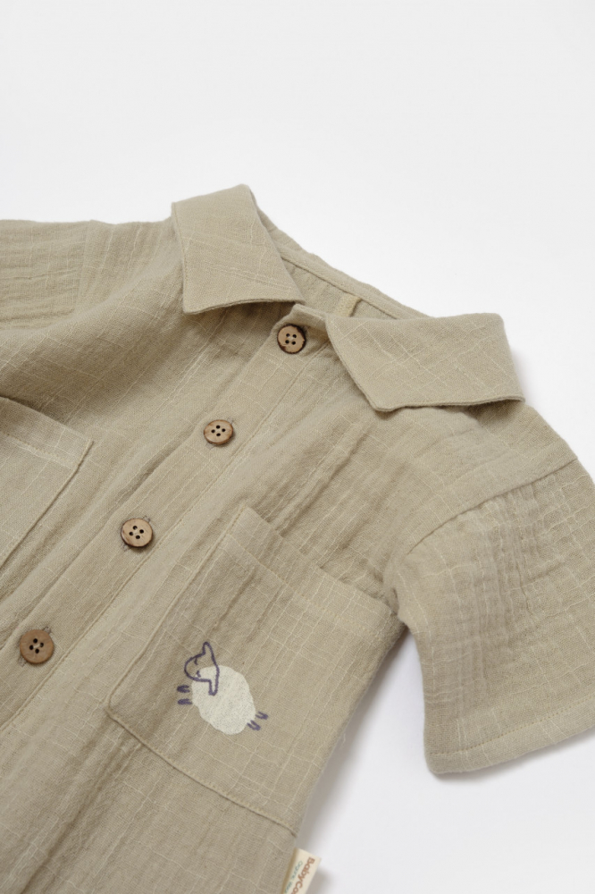Salopeta cu maneca scurta si nasturei Sheep 100% bumbac Verde BabyCosy 18-24 Luni
