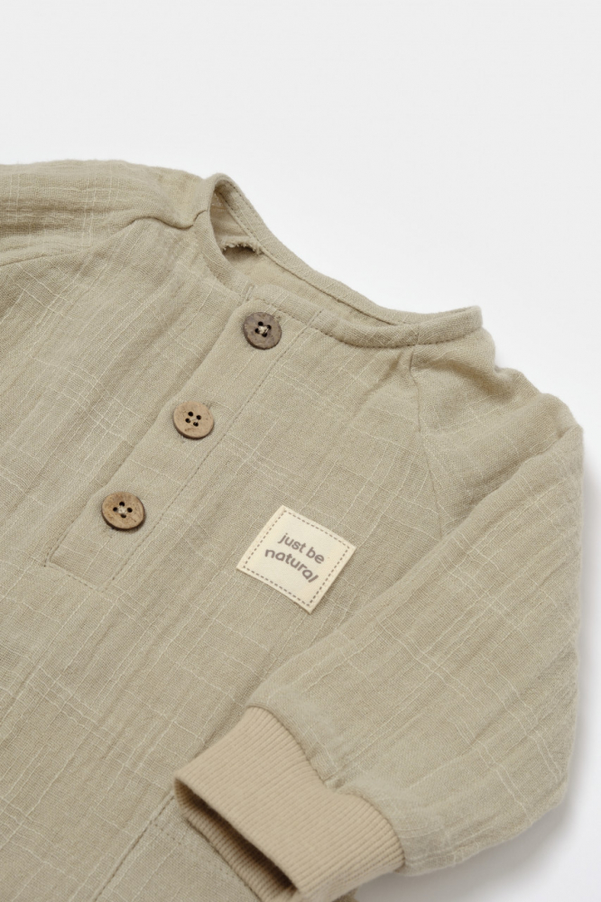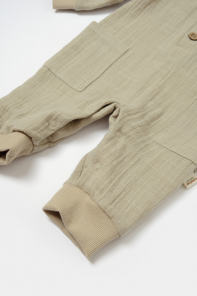 Salopeta cu nasturei Winter muselin 100% bumbac Verde BabyCosy 3-6 Luni