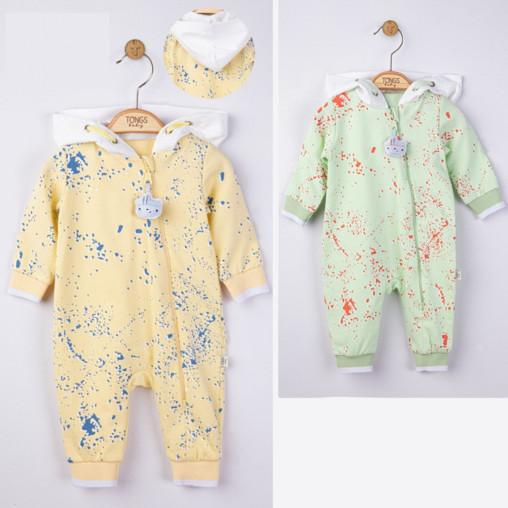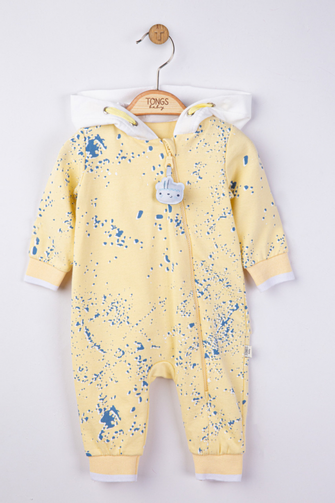 Salopeta cu stropi si gluga pentru bebelusi Tongs baby Galben 6-9 luni