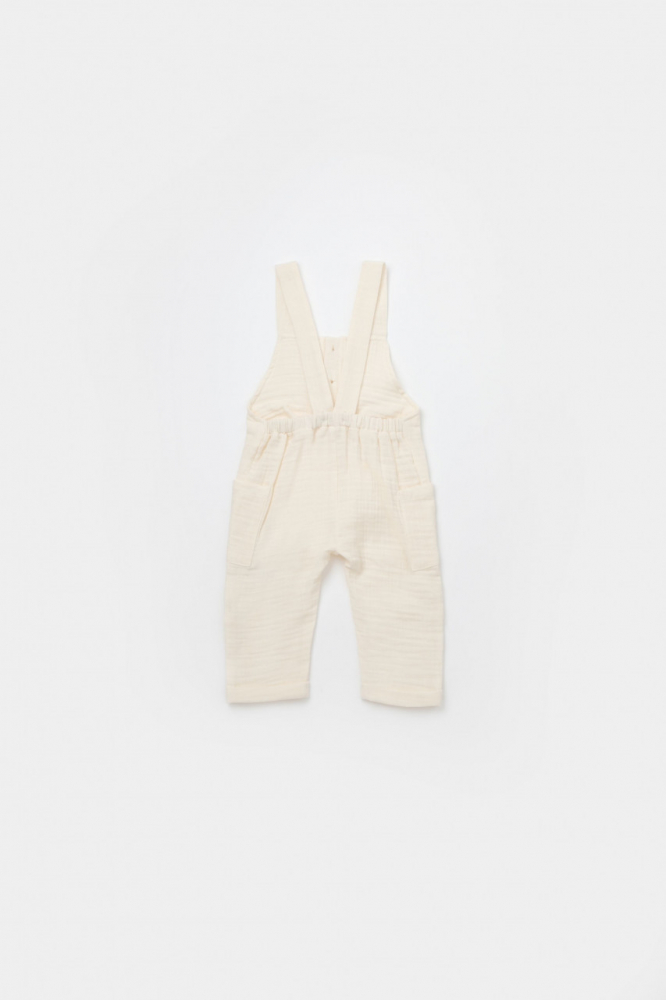 Salopeta de vara cu buzunare din muselina bumbac organic ecru 18-24 Luni