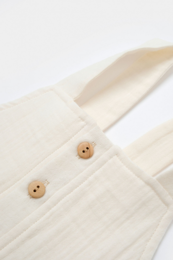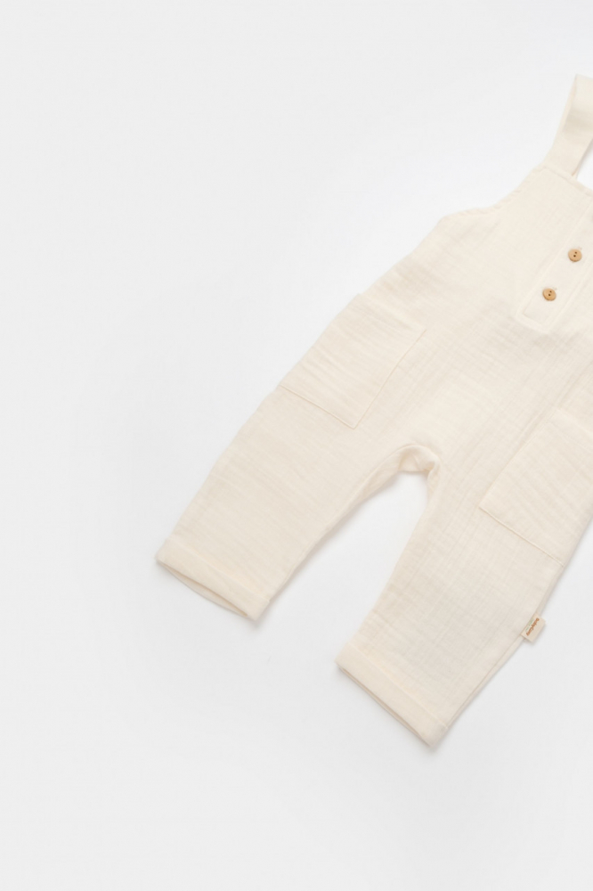 Salopeta de vara cu buzunare din muselina bumbac organic ecru 9-12 luni