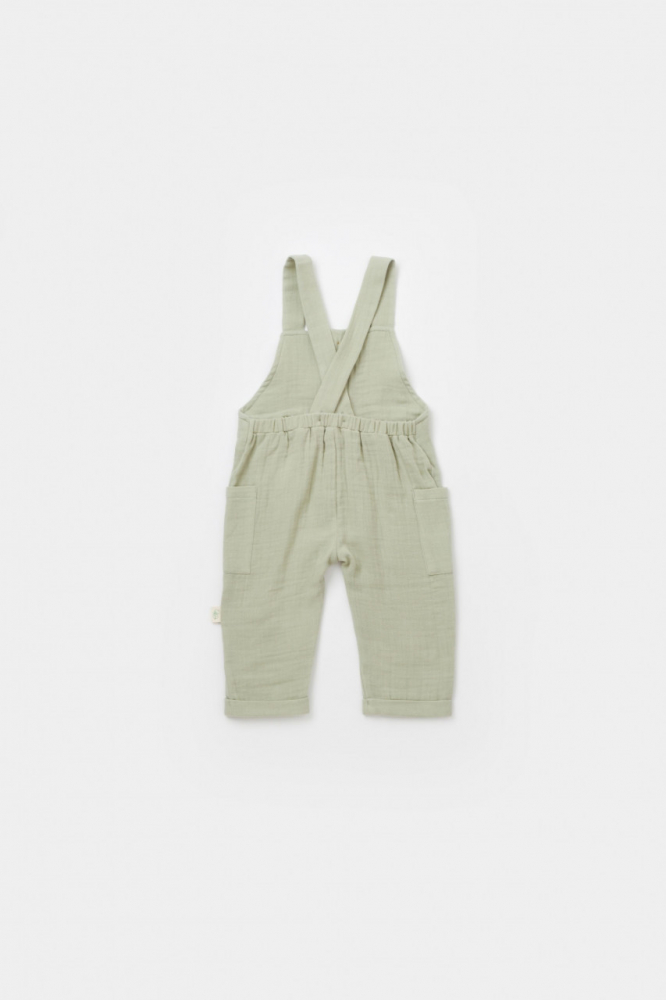 Salopeta de vara cu buzunare din muselina bumbac organic verde 18-24 Luni