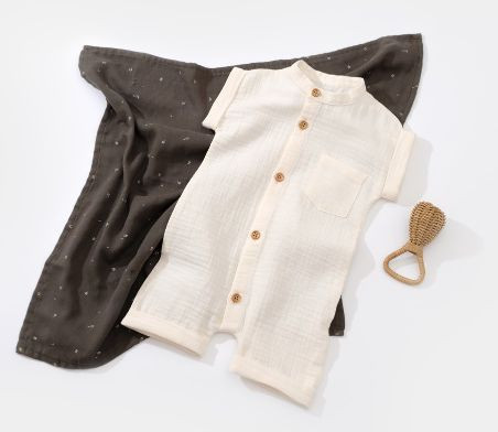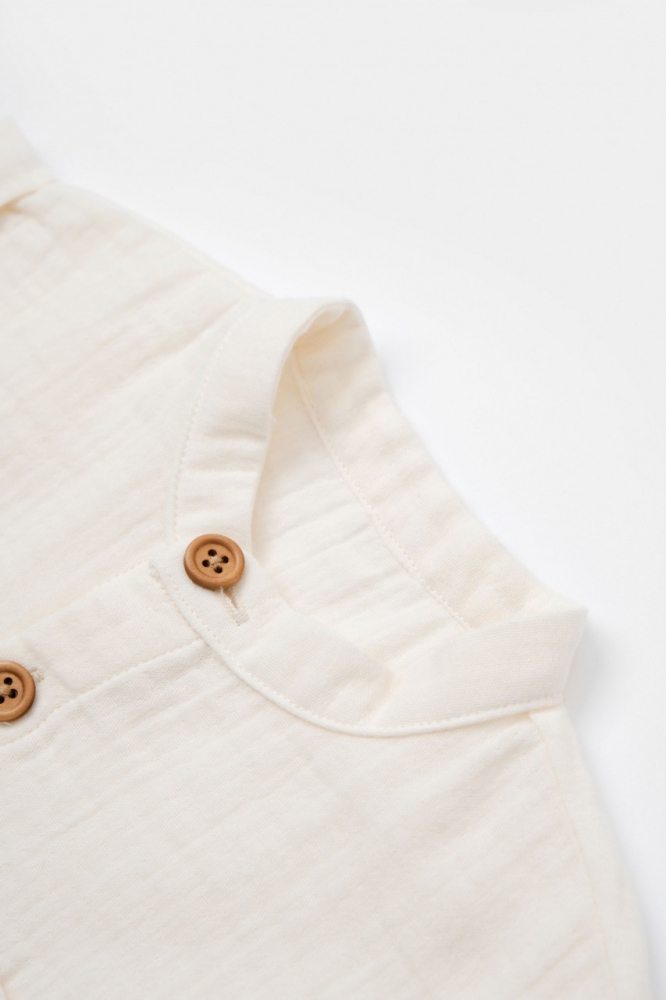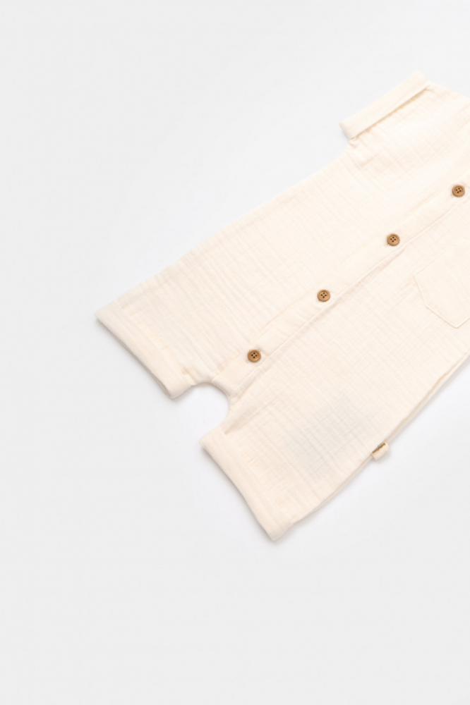 Salopeta de vara cu maneca scurta din muselina bumbac organic Ecru 6-9 luni