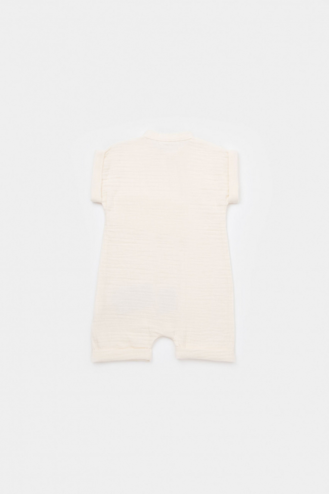 Salopeta de vara cu maneca scurta din muselina bumbac organic Ecru 9-12 luni