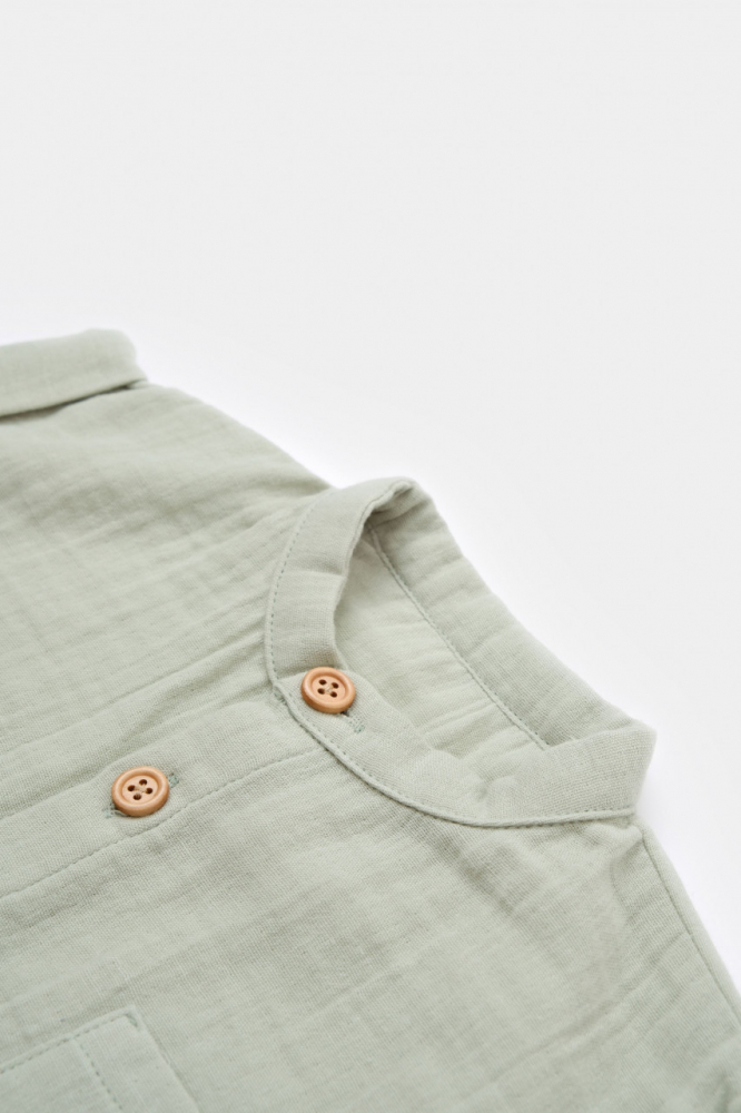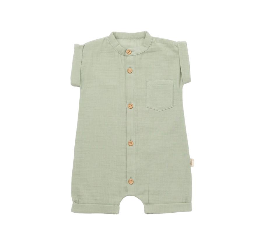 Salopeta de vara cu maneca scurta din muselina bumbac organic Verde 6-9 luni
