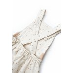 - Este realizat din bumbac organic 100% - muselina - material certificat GOTS, delicat cu pielea gingasa a a bebelusului. Printurile sunt cu vopseluri pe baza de apa si toate produsele sunt in concordanta cu standardele GOTS.