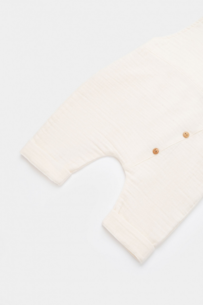 Salopeta de vara cu pantaloni lungi din muselina bumbac ecru 6-9 luni