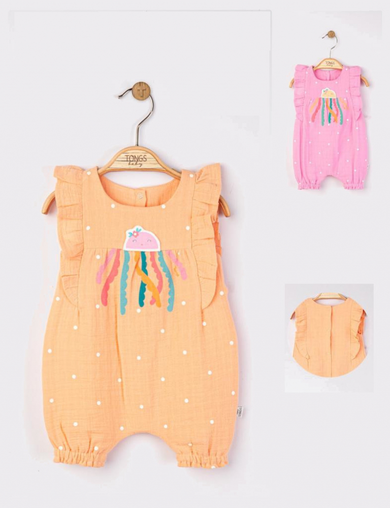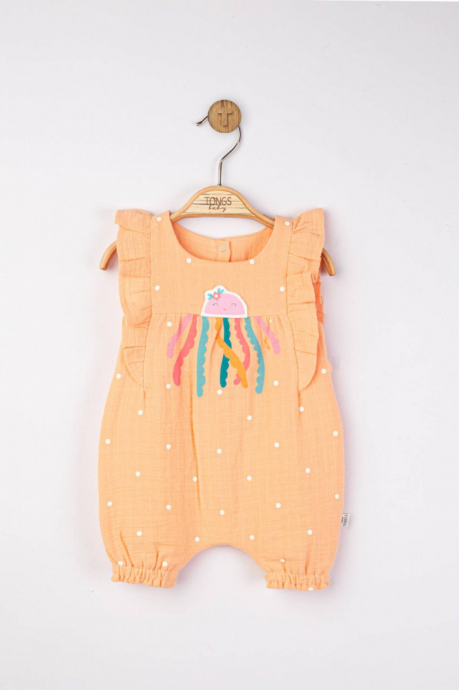 Salopeta de vara din muselina Tongs baby Octopus Somon 3-6 Luni