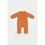 Salopeta Elefant cu maneca lunga din 80% bumbac organic si 20% poliester Caramiziu 9-12 luni
