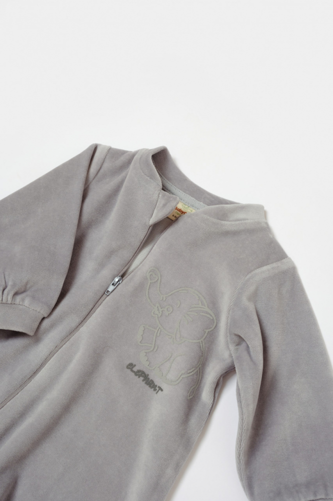 Salopeta Elefant cu maneca lunga din 80% bumbac organic si 20% poliester Gri 18-24 Luni