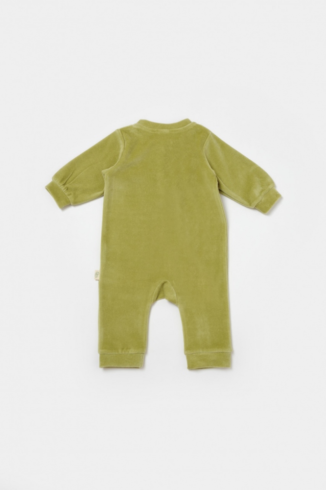 Salopeta Elefant cu maneca lunga din 80% bumbac organic si 20% poliester Verde 12-18 Luni