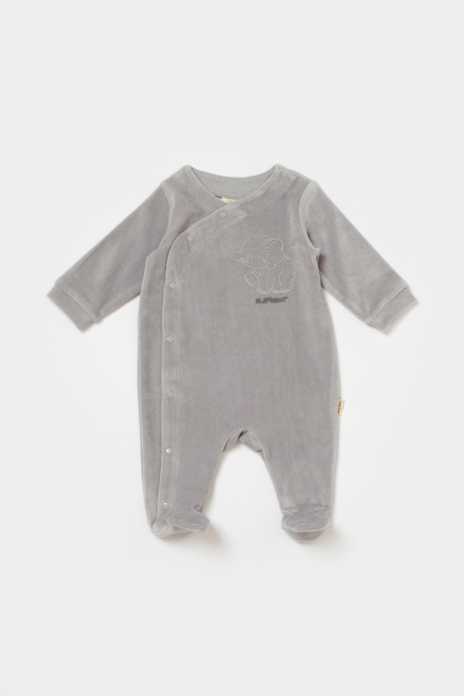 Salopeta Elefant cu maneca lunga si botosei din 80%bumbac organic si 20% poliester Gri 0-3 Luni