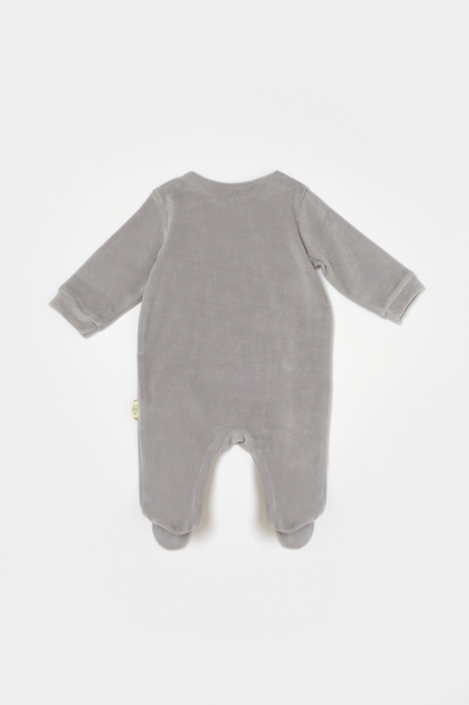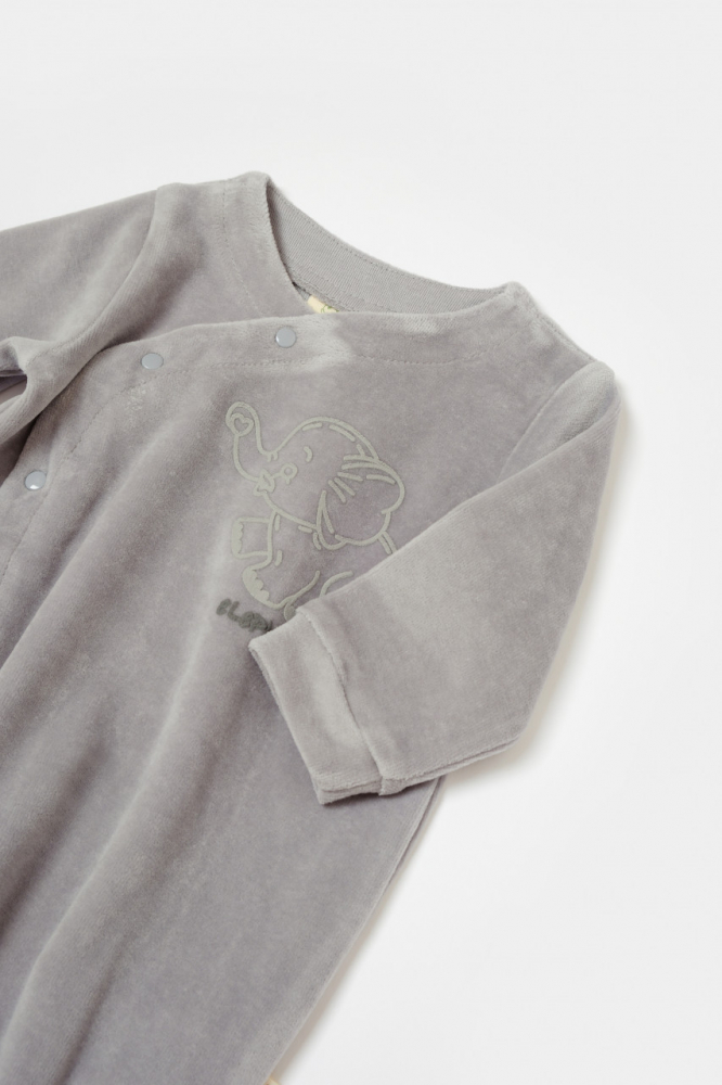 Salopeta Elefant cu maneca lunga si botosei din 80%bumbac organic si 20% poliester Gri 6-9 luni