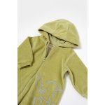 Salopeta Elefant cu maneca lunga si gluga din 80% bumbac organic si 20% poliester Verde 6-9 luni