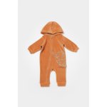 Salopeta Elefant cu maneca lunga si gluga din 80%bumbac organic si 20% poliester Caramiziu12-18 Luni