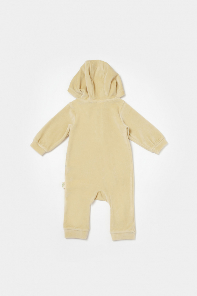 Salopeta Elefant cu maneca lunga si gluga din 80%bumbac organic si 20% poliester Stone 6-9 luni