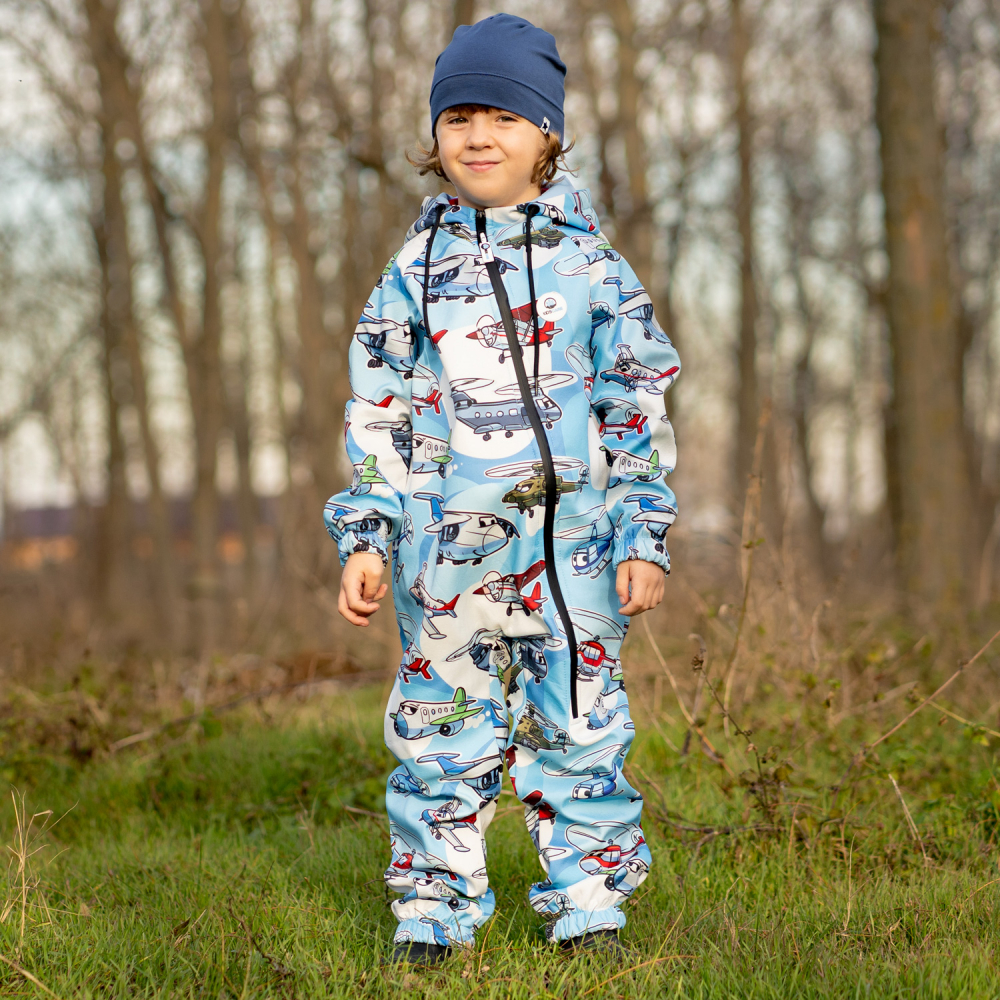 Salopeta impermeabila pentru copii Kidscare, cu protectie la vant si apa cu imprimeu Avioane - marime 104